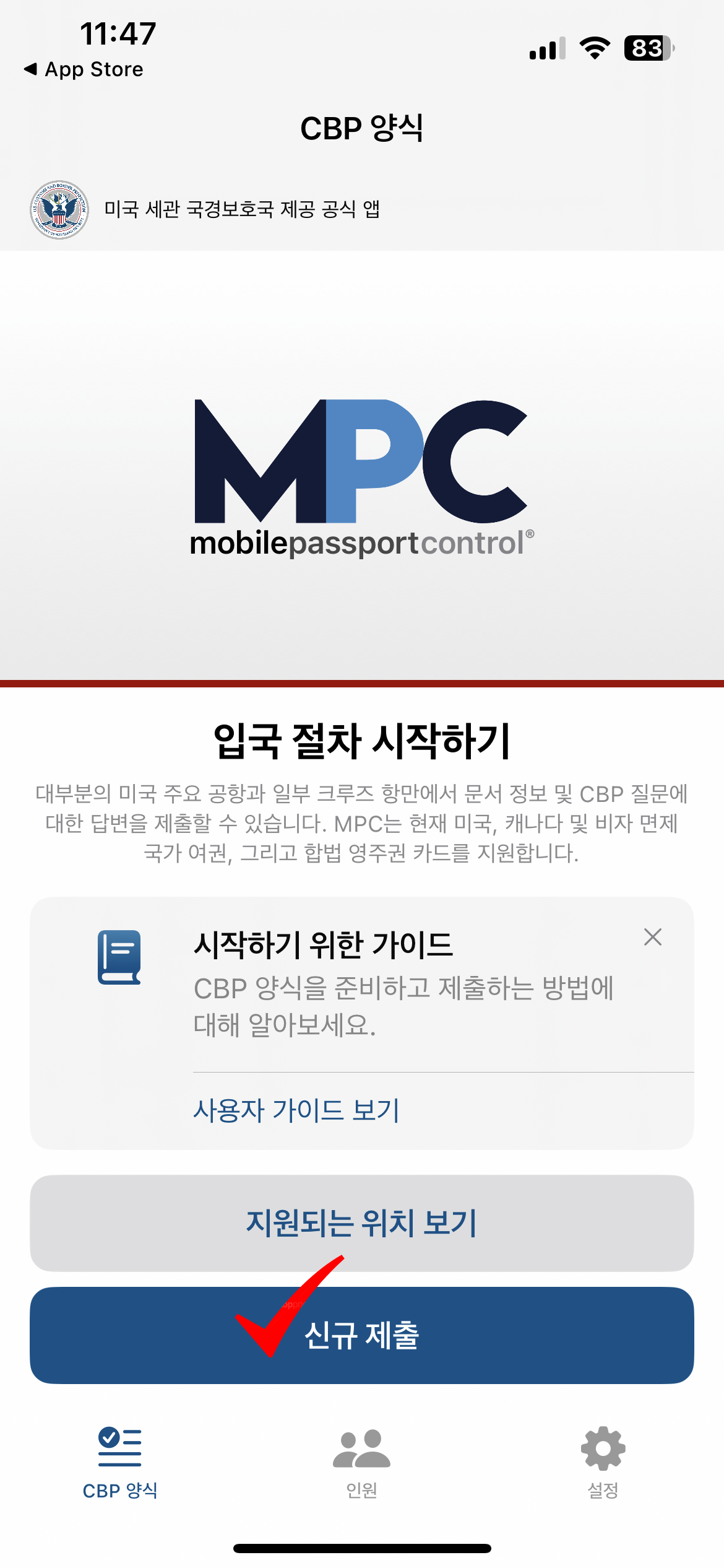 💡입국 당일, 비행기에서 내려서 MPC 줄에 서기 전에 어플에 접속해 제출하시면 됩니다.💡
