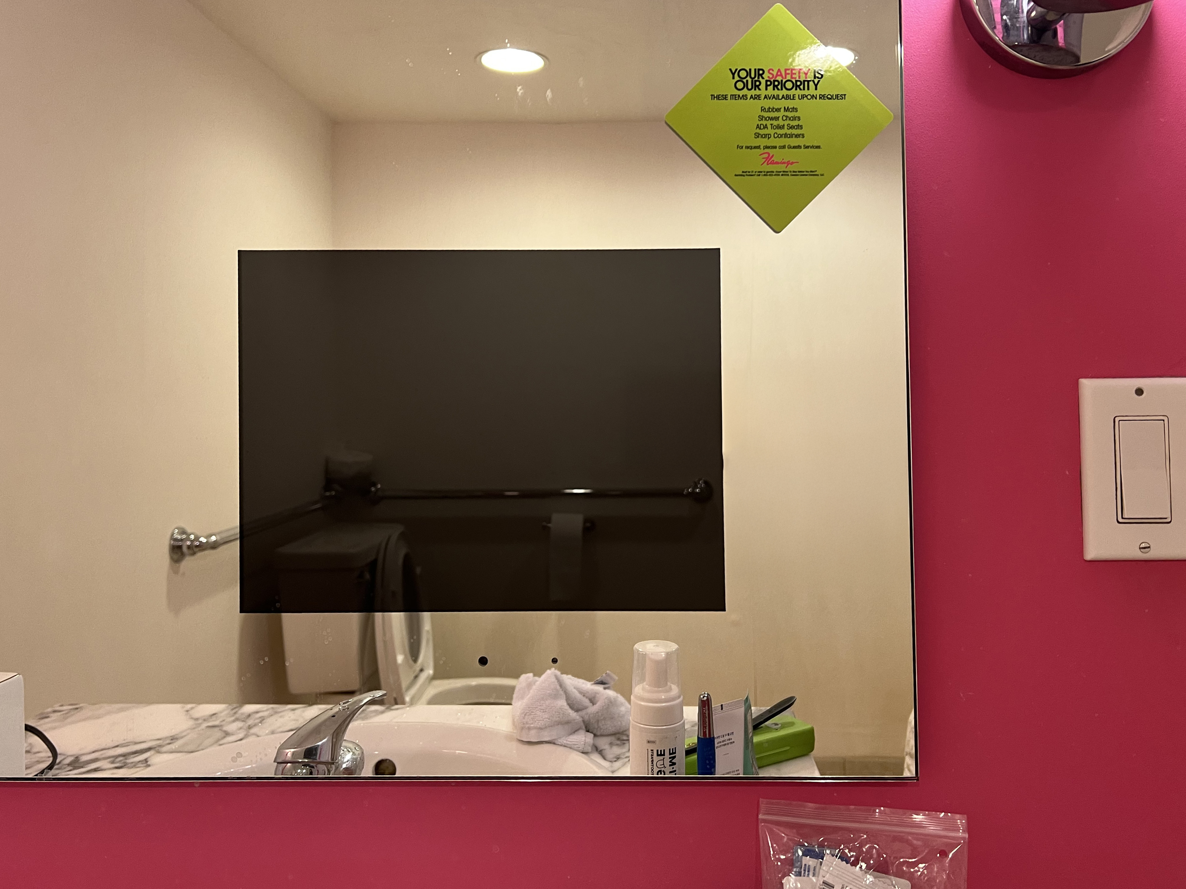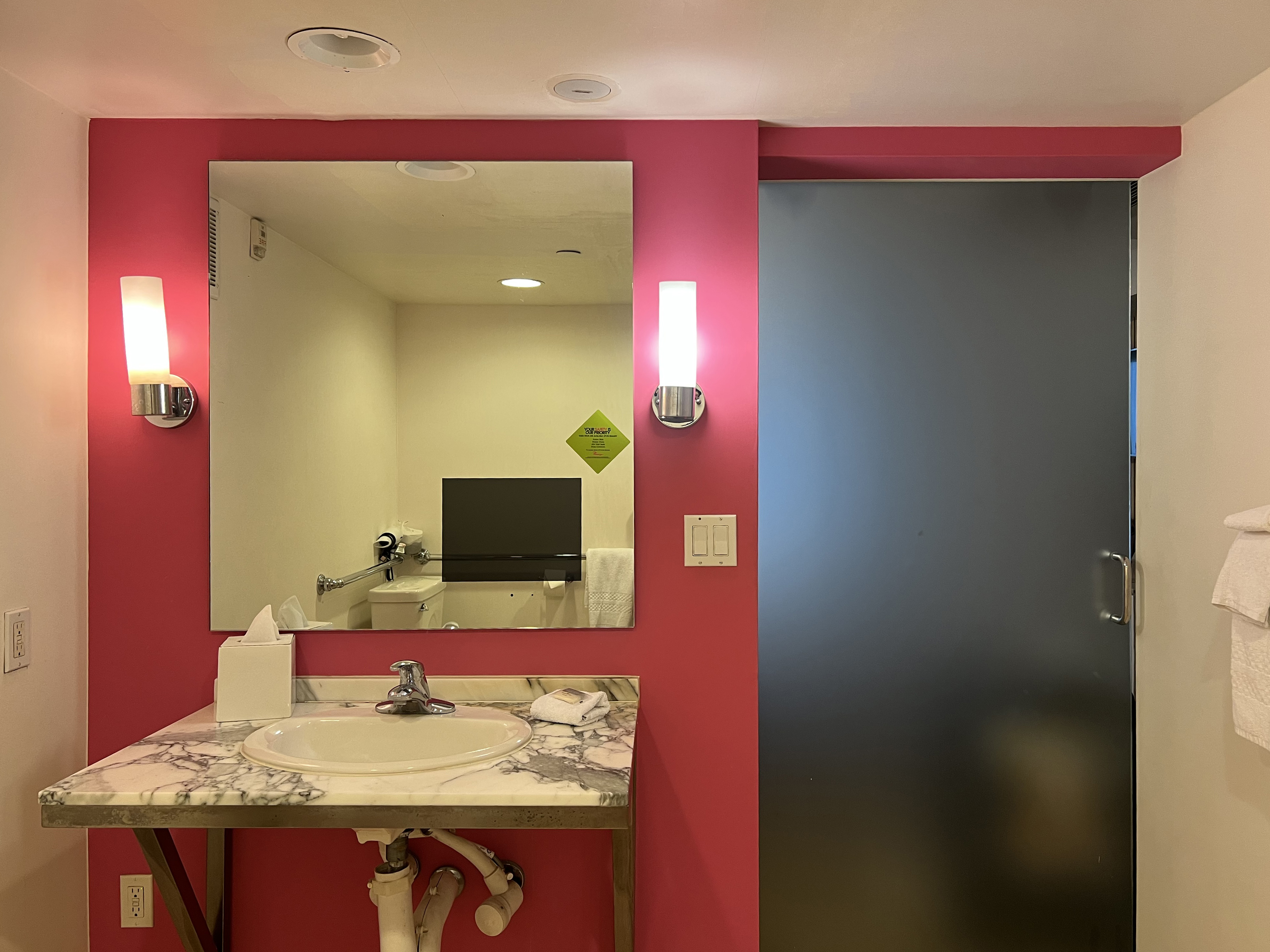 체크아웃 방식도 전망도, 화장실 내 TV도 모두 인상깊었던 미국 숙소였어요.